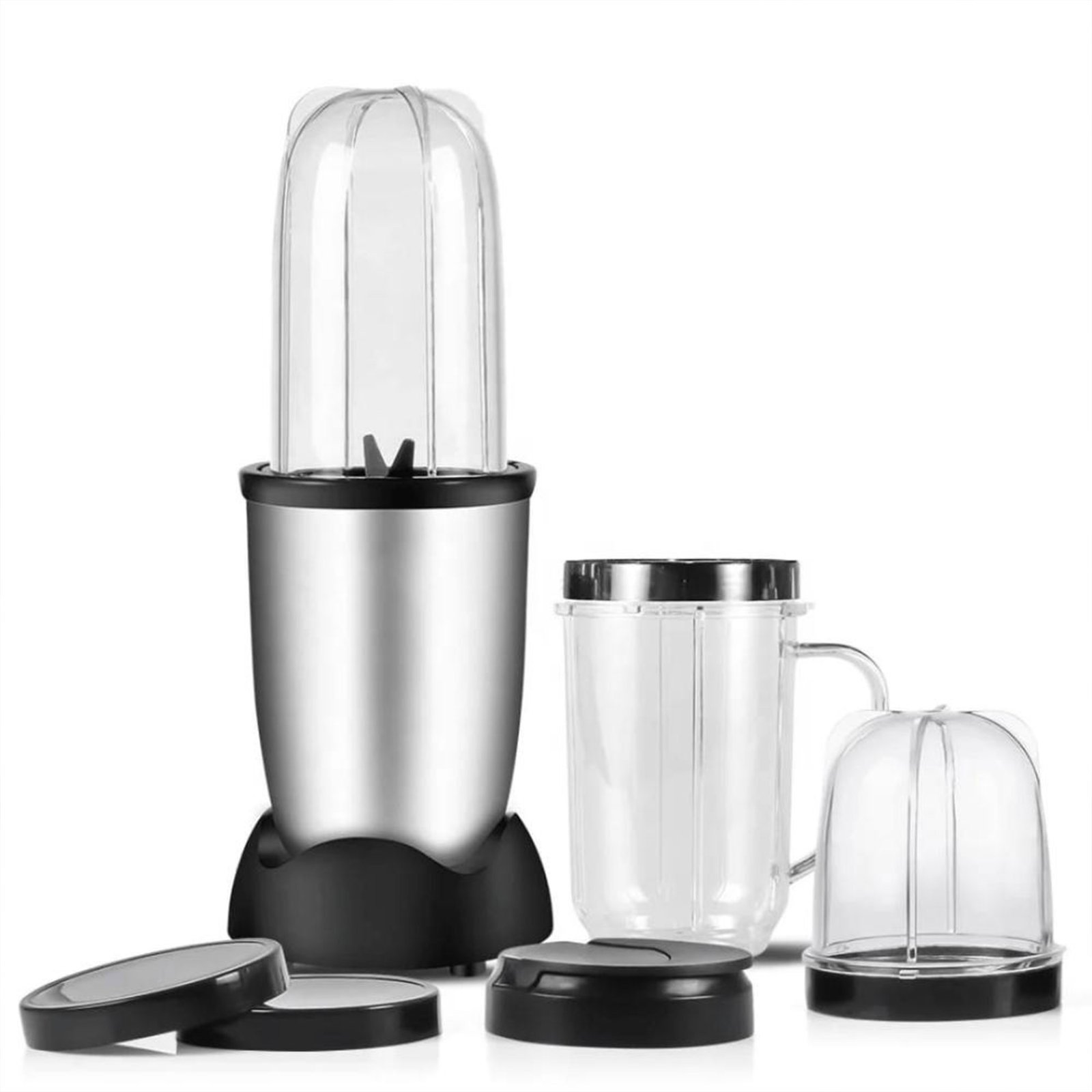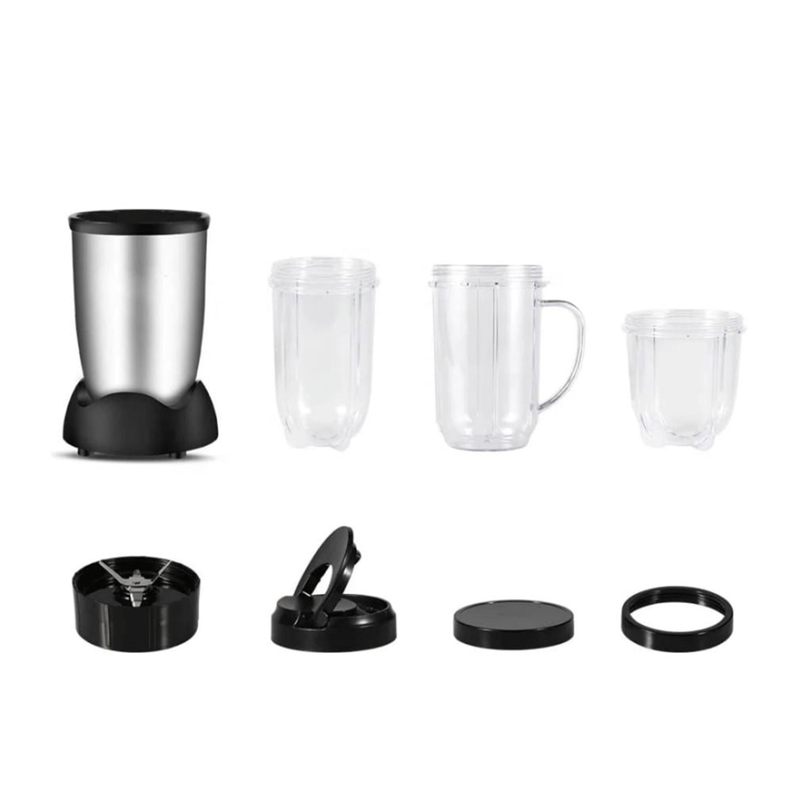- المكونات: قاعدة محرك، شفرات للخلط، أكواب متعددة الأحجام، وأغطية