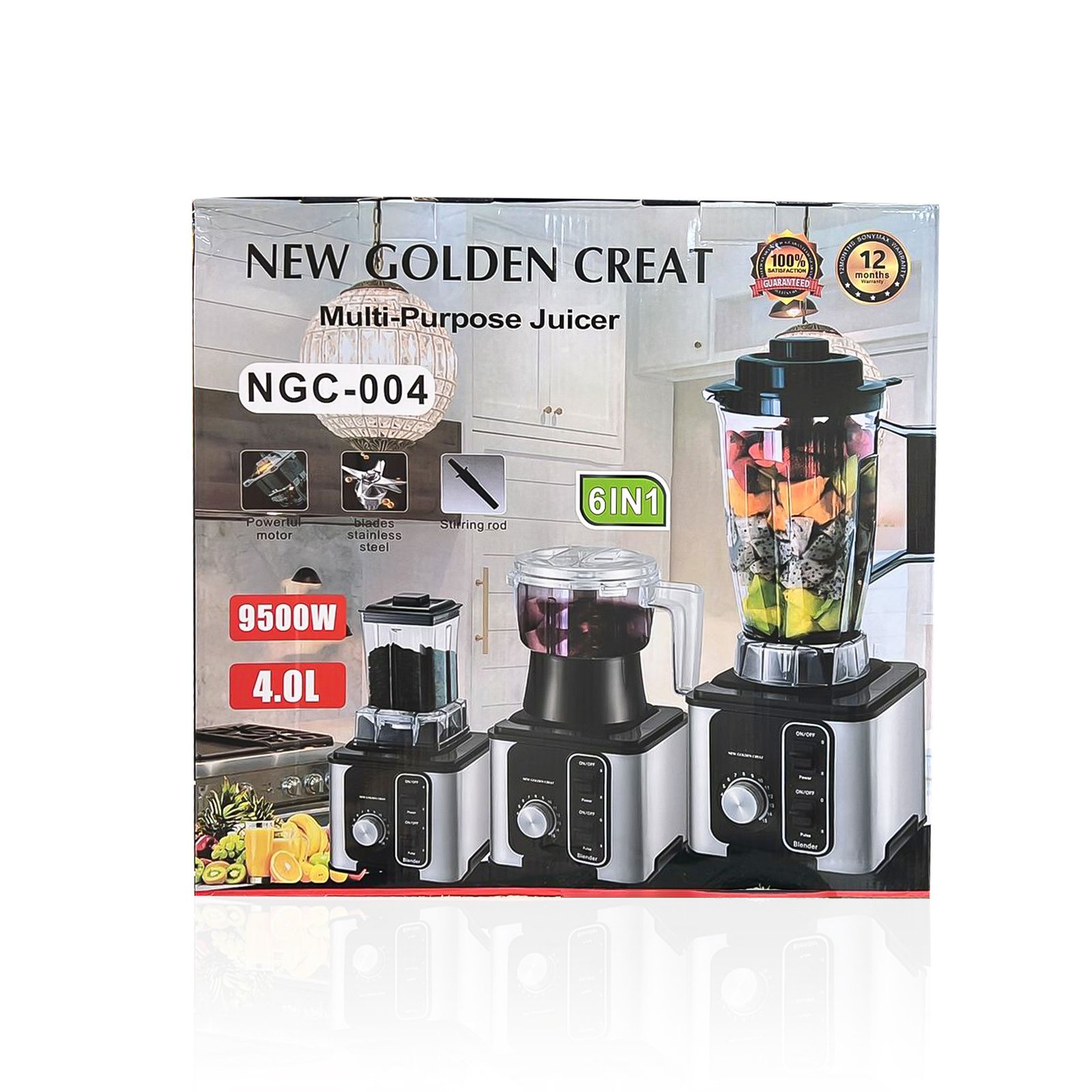 محضر الطعام وخلاط 6 في 1 بمحرك كامل 9500 واط نيو جولدن بضمان عام